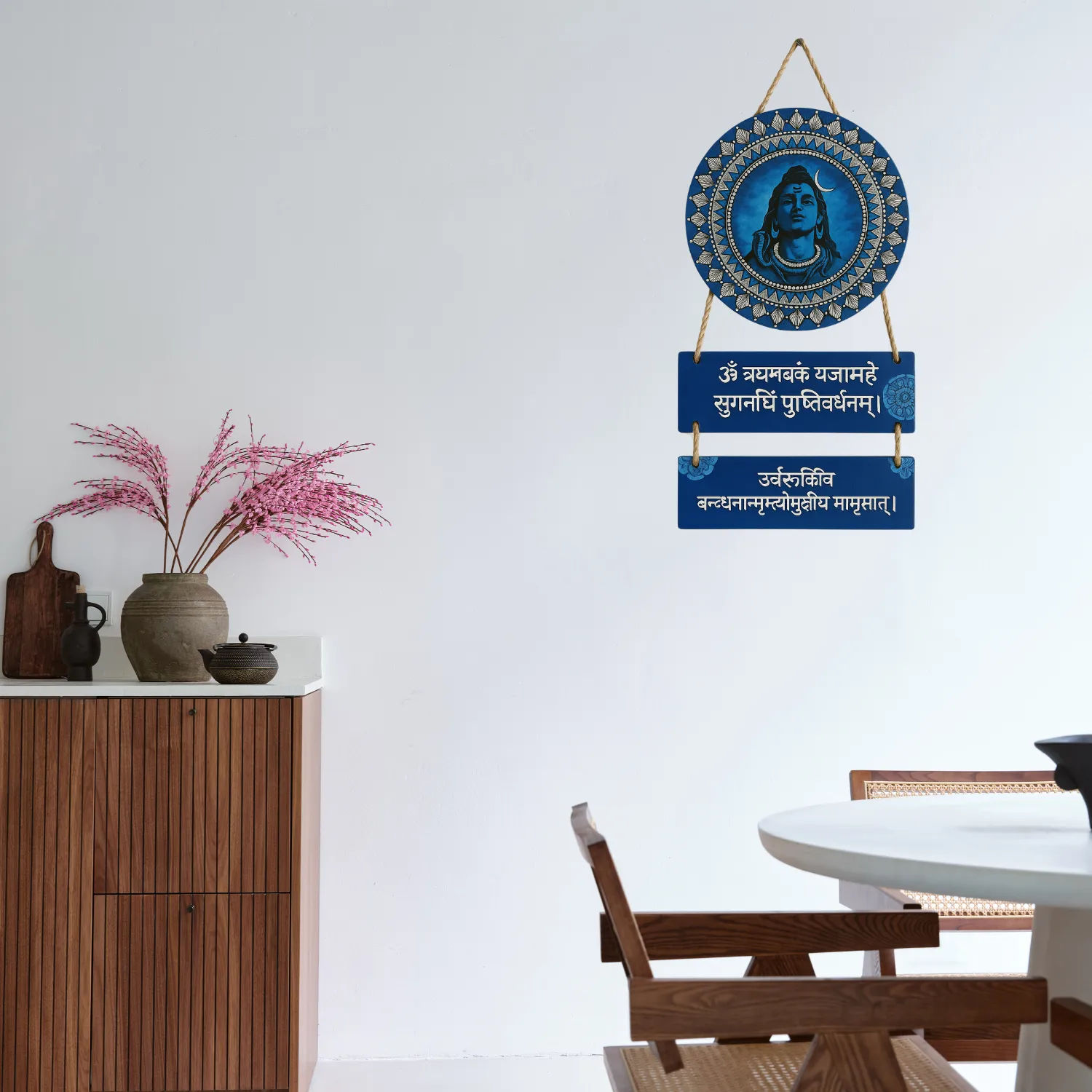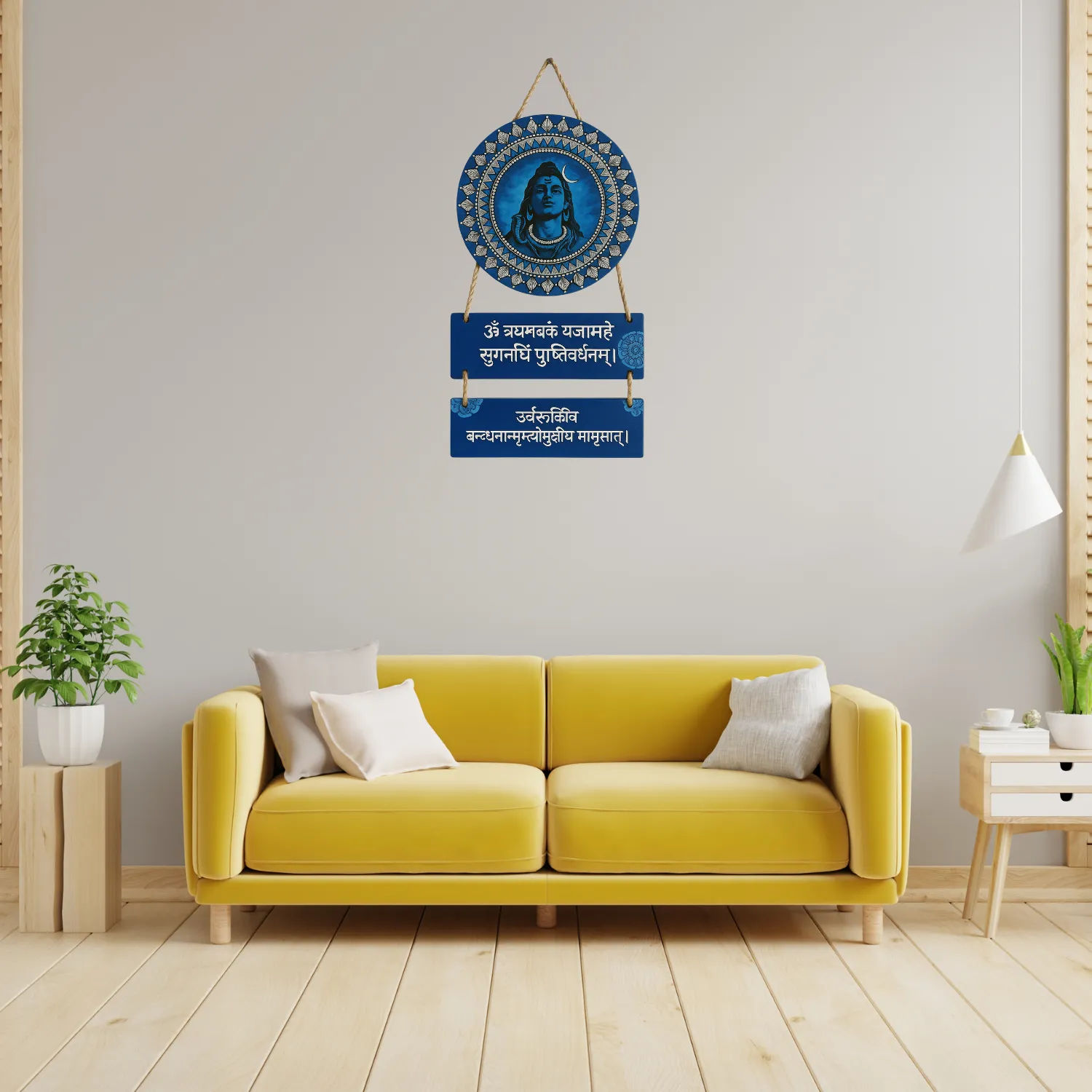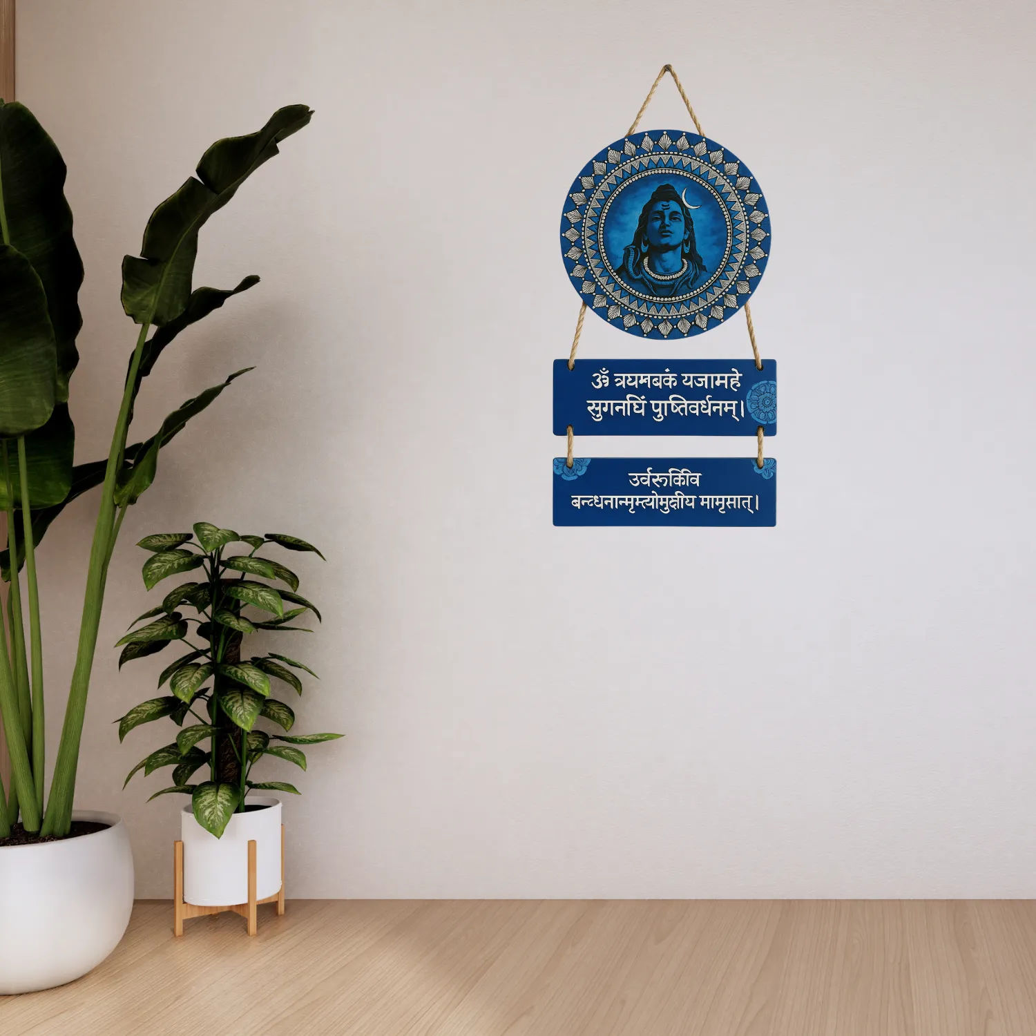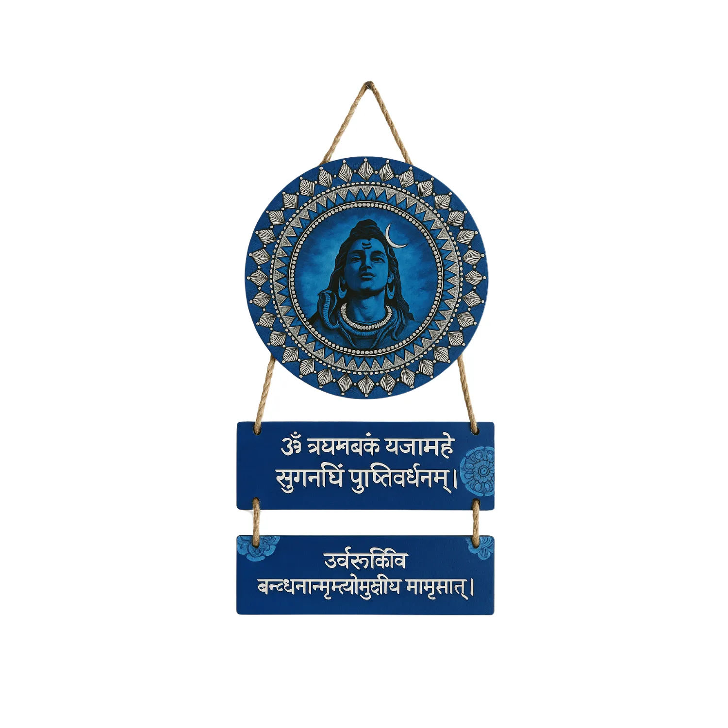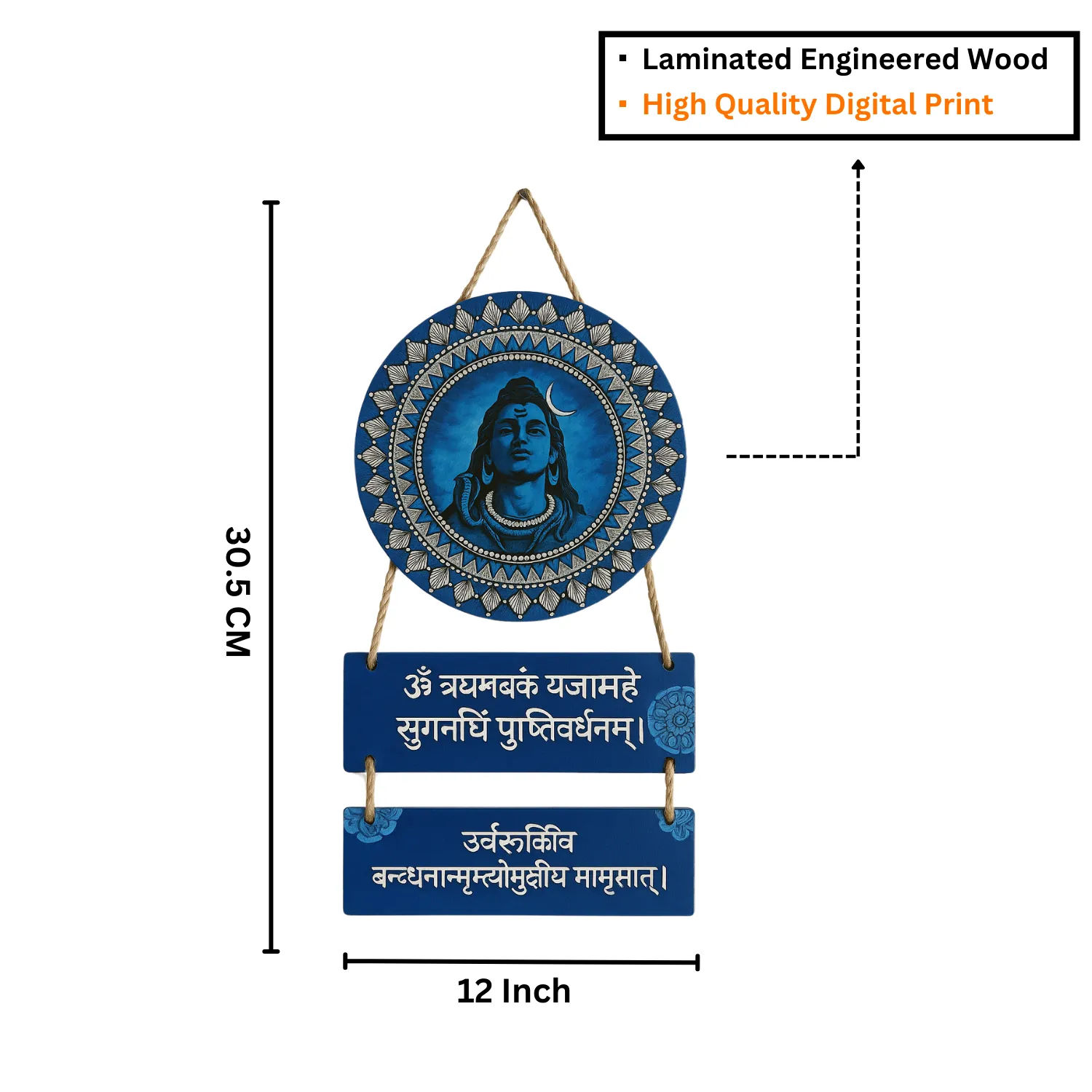Add spiritual depth and artistic flair to your home with this powerful Mahadev Mantra Wooden Wall Hanging. Featuring sacred mantras and a modern design, this beautifully crafted piece brings the blessings of Lord Shiva (Mahadev) into your surroundings. Ideal for your home, kitchen, living room, or entrance, its versatile 18 x 30 CM size makes it a perfect decorative and spiritual accent.