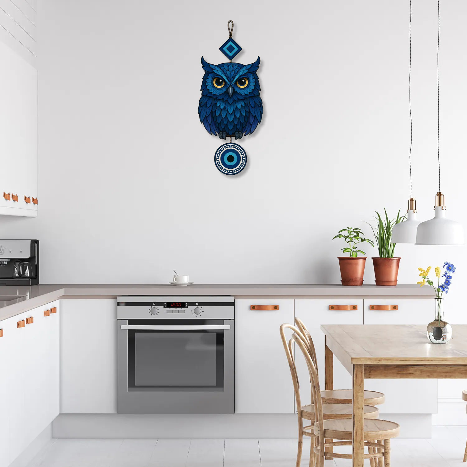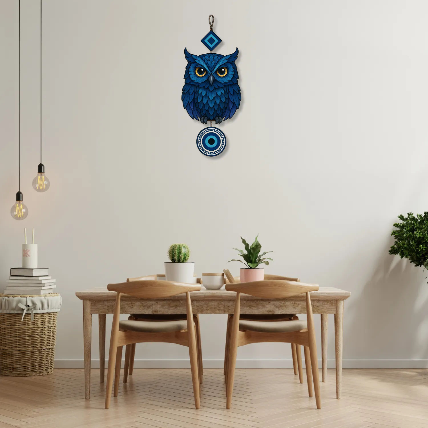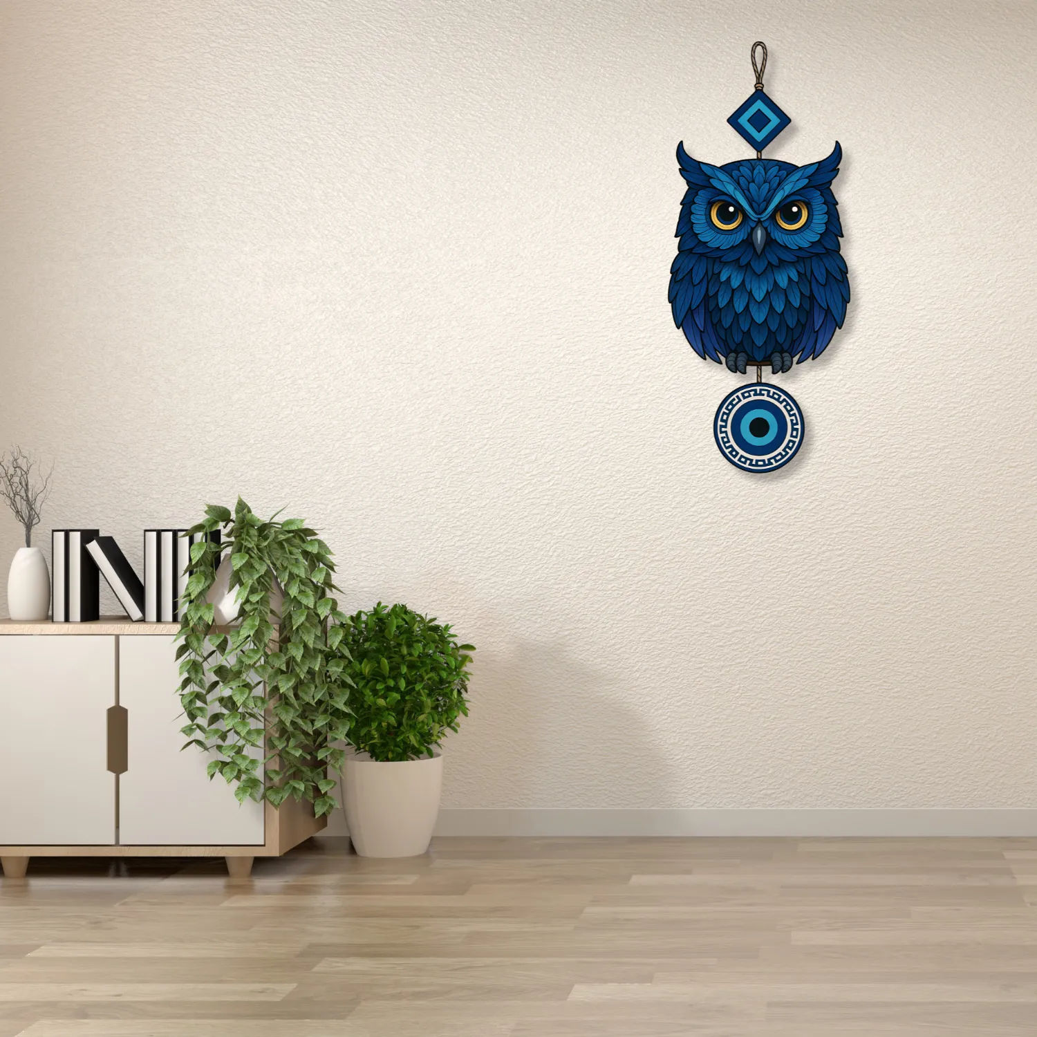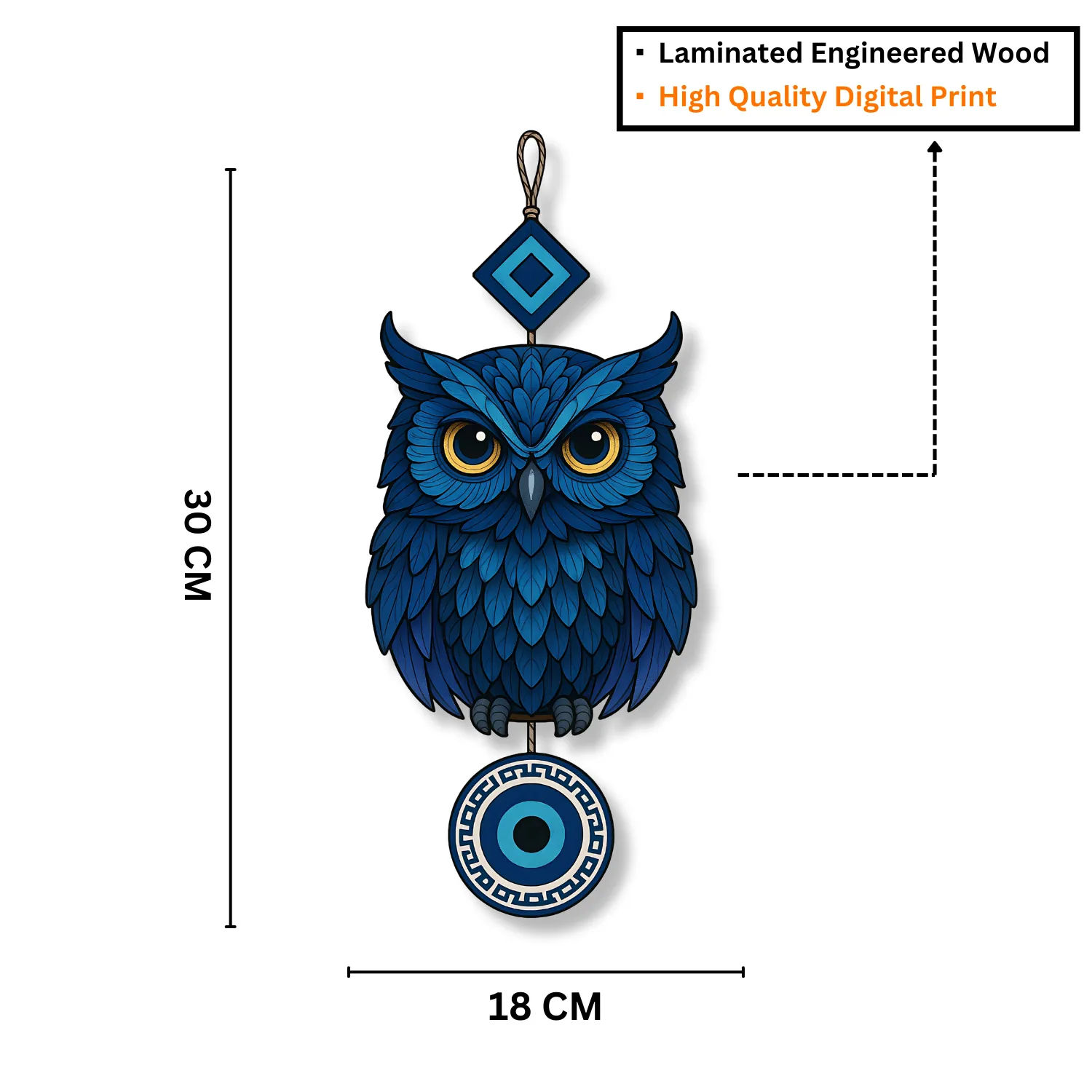 • 🦉 Eye-Catching Owl Design with Evil Eye – The owl represents wisdom and protection, while the evil eye is known to guard against negative energies. Together, they create a powerful decorative symbol for your home.